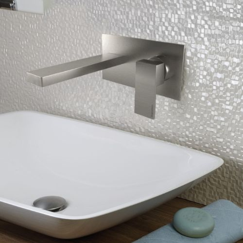 Bugnatese Tetris fali mosdócsaptelep 15,5 cmes kifolyóval, szálcsiszolt nikkel színben.