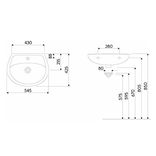 Kolo Idol mosdó csaplyukkal, 55x42cm
