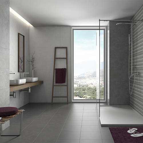 Szinte homogén, letisztult betonhatású matt falicsempe család.