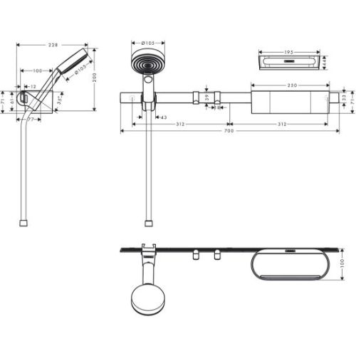 A kézi zuhany matt fekete kivitelű, vízsugarai között megtalálható a PowderRain, IntenseRain és MonoRain. A vízsugarak egyszerűen választhatók a Select gomb segítségével, miközben a maximális áramlási sebesség 8,5 l/perc (0,3 MPa nyomáson). A zuhany QuickClean technológiával rendelkezik, így a vízkő egyszerűen eltávolítható. A csatlakozás G 1/2”, bemeneti méret DN15, belső vízellátással.