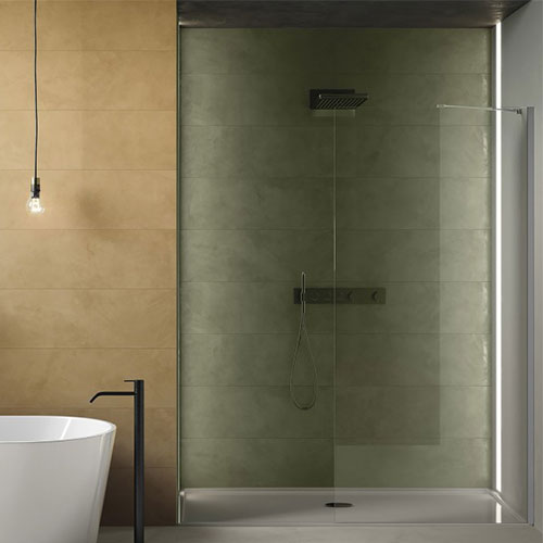 Homogén, pasztelszínű burkolatcsalád, amely jól kiegészül a geometrikus formákkal díszített dekorlapkkal.