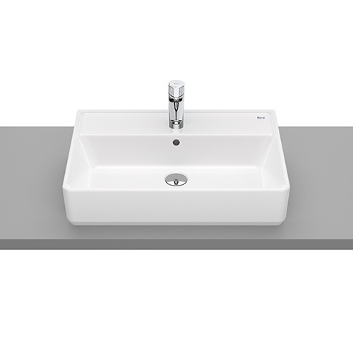 Roca Alter Mosdó pultra építhető szögletes, csaplyukkal, 60x42 cm, fehér