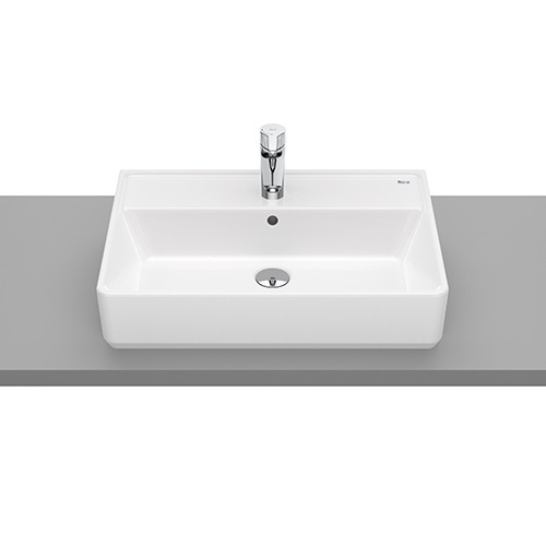 Roca Alter Mosdó pultra építhető szögletes, csaplyukkal, 60x42 cm, fehér ()