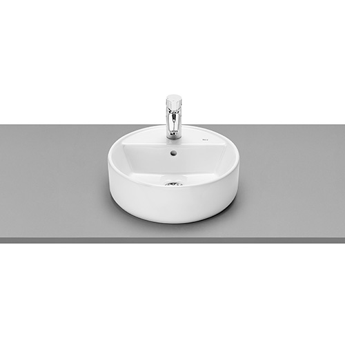Roca Alter Mosdó pultra építhető kerek, csaplyukkal, 40 cm, fehér ()
