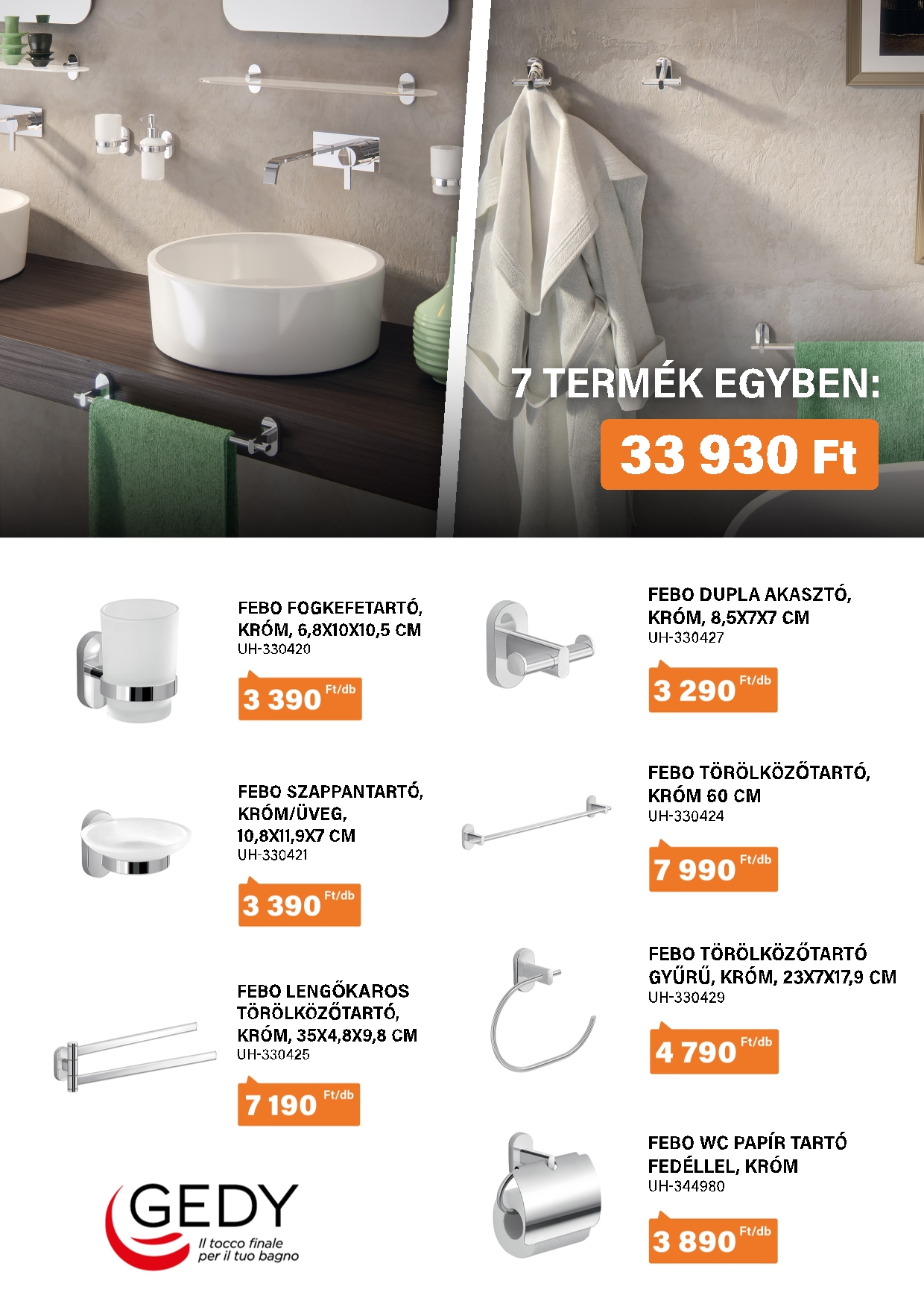 A fürdőszoba tervezésnél, felújításnál nem csak a csempéket, járólapokat és bútorokat kell kiválasztani, hanem az egyéb fürdőszobai kiegészítőket is, mint a wc papír tartók, törölközőtartók vagy szappanadagolók. Kínálatunkból most összegyűjtöttük azokat az EMCO, Gedy és KEUCO márkákhoz tartozó termékeket, amelyek remekül illeszkednek egymáshoz és a legtöbb fürdőszobához is. A termékeket akár külön-külön, akár csomagban is meg tudja vásárolni kínálatunkból! Nézze meg katalógusunkat és válogasson kedvére!